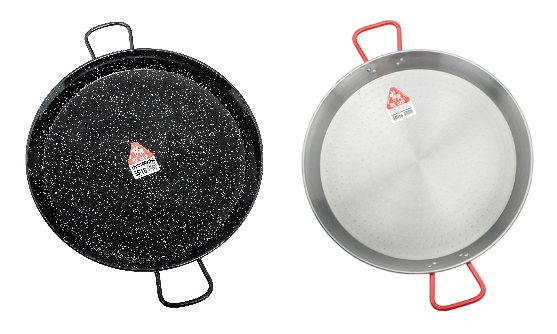 Une poêle à paella en émail (ou en acier émaillé) est inoxydable, contrairement à une poêle à paella en acier (ou en acier poli). Une poêle à paella en émail est également plus facile à nettoyer et à entretenir (cliquez ici pour plus d'informations).