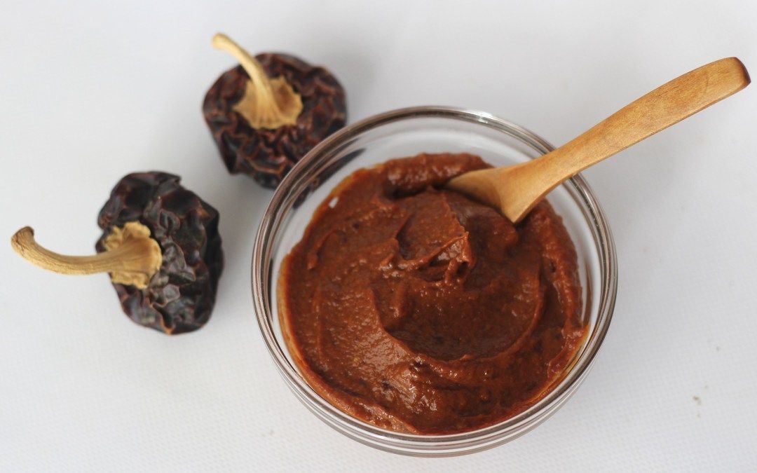 La salmorreta est une variante du sofrito, enrichie d’un ingrédient clé : les piments ñora. La ñora est un petit piment rond typique de la région méditerranéenne, notamment autour d’Alicante. Il n’est pas piquant, mais offre une saveur douce, intense et légèrement fumée. Les ñoras séchées sont épépinées et coupées et elles sont revenues avec l’ail dans l’huile d’olive. La tomate est ensuite ajoutée et le tout est mixé en une sauce lisse.