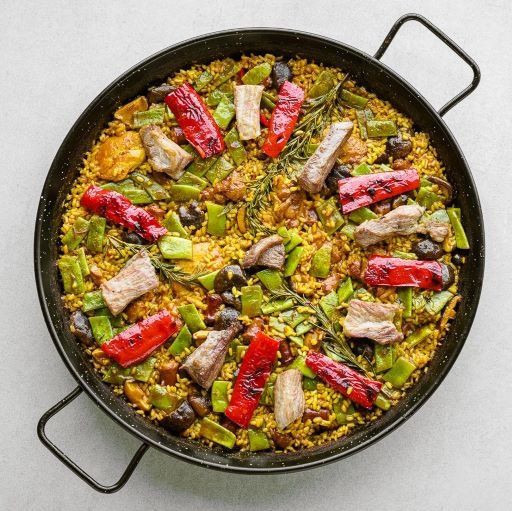 In Spanje houdt men het meestal vrij sober. De rijst staat centraal in het gerecht en smaakt heerlijk nadat ze alle aroma's geabsorbeerd heeft. De andere ingrediënten (vlees, vis of zeevruchten) worden met mate gebruikt.